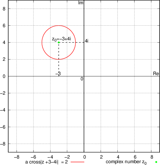 In our case it is a circle in a complex plane with centre in and radius r = 2