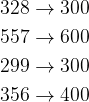 • Complete the table above by rounding each number to the nearest hundred. The first one is done for you.