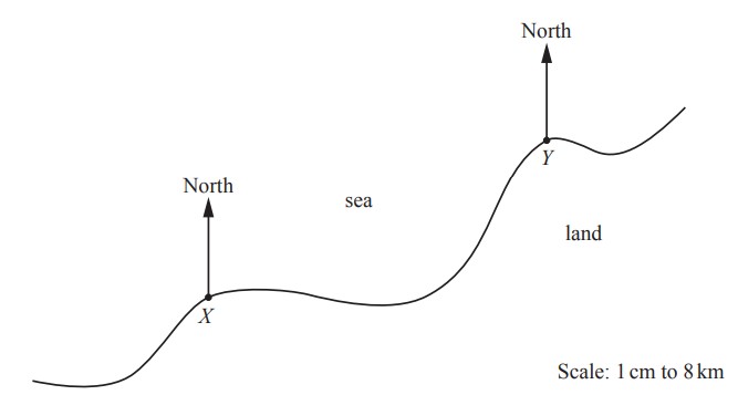 A ship, S, is on a bearing of from X. Work out the bearing of X from S.