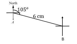 Ship B is from ship A on a bearing of . On the scale drawing, mark the position of ship B.