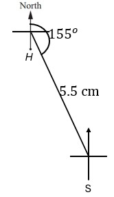A school, S, is from H on a bearing of . Mark the position of S on the scale drawing.