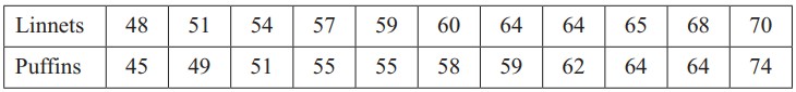 On the grid below, draw a box-and-whisker plot to represent the information for the Linnets and the Puffins.