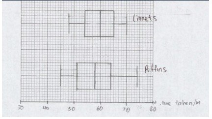 Last Saturday, a cycling competition for teams of 11 cyclists took place. For each cyclist, the time taken to complete the course was recorded to the nearest minute. The times taken by the cyclists from two teams, the Linnets and the Puffins, are shown in the following table.