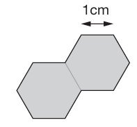 All the hexagons in this question are the same size. Each side of a hexagon is long. I put two hexagons together to make this shape.