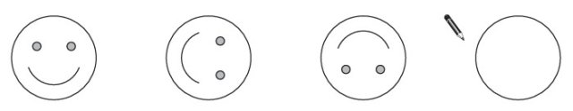 The face rotates clockwise through one right angle each time. Complete the last face.