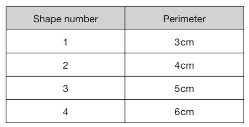 Jo makes shape number 15. What is the perimeter of shape number 15?
