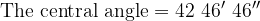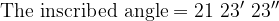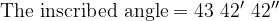The sum of an inscribed angle and its corresponding central angle is . What are the measures of the two angles? Express the answer to the nearest angular seconds.