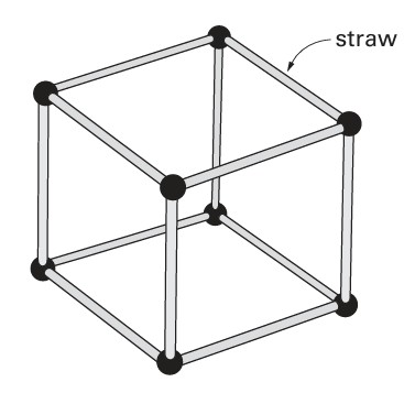 Anna makes a cube using straws. First, she joins 4 straws to make a square. Then she joins more straws to make a cube.