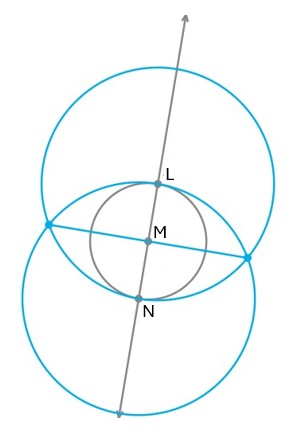 The diagram below shows a partly completed construction of a line through A that is perpendicular to AB. Complete the construction.
