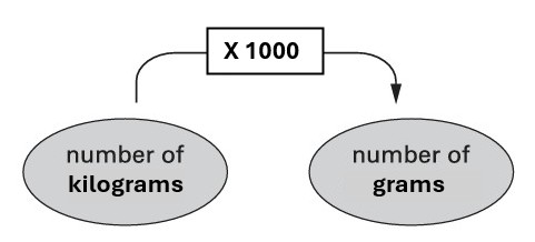 It shows how to change kilograms into grams.
