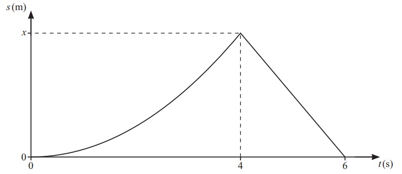 The diagram shows the displacement-time graph for the motion of a particle. The particle starts from rest at a point O and travels with constant acceleration