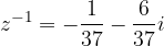 Find the inverse of the complex number .