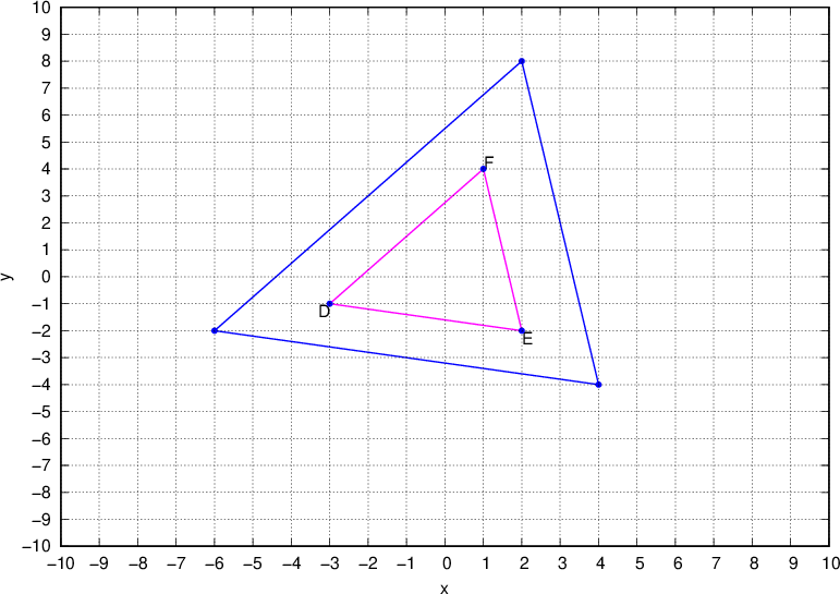Graph the image of △DEF after a dilation with a scale factor of 2, centred at the origin.