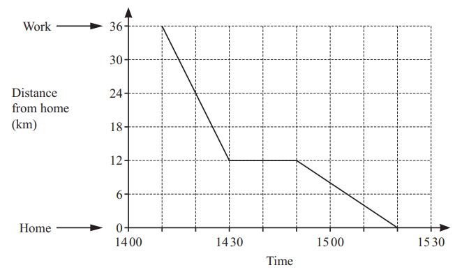 Tim drives home from work. The travel graph shows his journey.