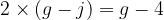 Algebraic expression for twice the difference of g and j equals the difference of g and 4