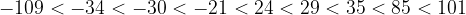 Arrange the numbers 101, -30, 35, -109, 29, -21, 24, -34, 85 in ascending order.