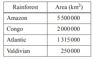 Find the area of the Valdivian rainforest as a percentage of the area of the Amazon rainforest.