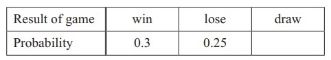 Pryanka plays a game in which she can win, lose or draw. The table shows the probability of her winning or losing a game.