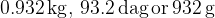 The mass of the cake with candles is .