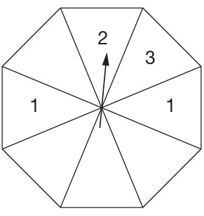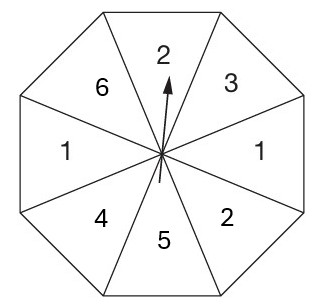 The diagram shows a fair spinner divided into 8 equal sections.