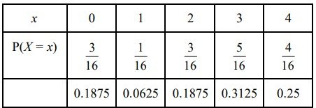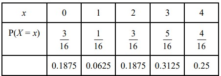 A fair red spinner has 4 sides, numbered 1, 2, 3, 4. A fair blue spinner has 4 sides, numbered 0, 1, 2, 3. When a spinner is spun, the score is the number on the side on which it lands. The two spinners are spun at the same time. The random variable