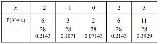 The random variable takes the values . It is given that , where is a positive constant. Draw up the probability distribution table for , giving the probabilities as numerical fractions.