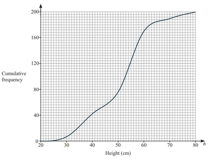 The cumulative frequency diagram shows some information about the heights of 200 plants.