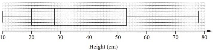 The box-and-whisker diagram shows information about the heights of some plants. Find the interquartile range of the heights.