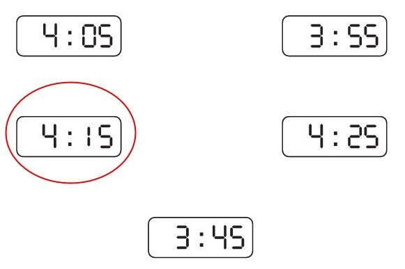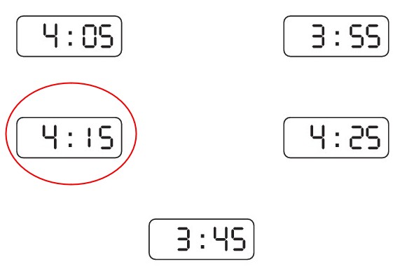The time on a digital clock is 2:45. What time will the digital clock show one and a half hours later? Put a ring around the correct time below.