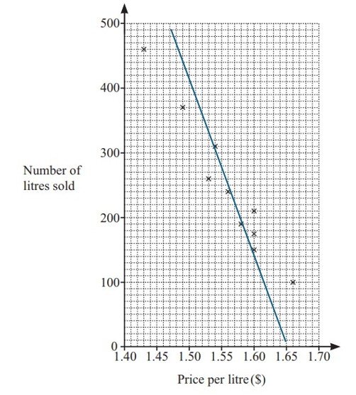• Use your line of best fit to estimate the number of litres sold.
