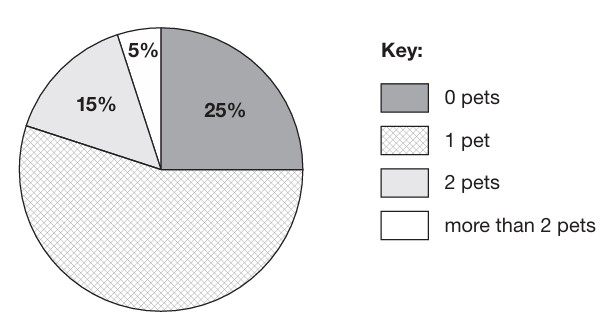 Chris asked the pupils in his class how many pets they had. He recorded her results on a pie chart.
