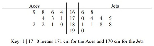 Draw a back-to-back stem-and-leaf diagram to represent this information with the Aces on the left-hand side of the diagram.