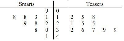 Represent this information in a back-to-back stem-and-leaf diagram with Smarts on the left-hand side.