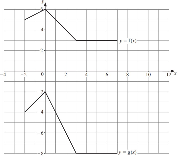 The diagram shows the graphs with equations and . Describe fully a sequence of two transformations which transforms the graph of to the graph of . Make clear the order in which the transformations should be applied.