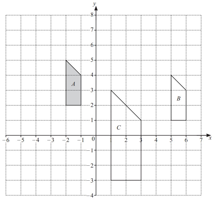 Sue describes the single transformation that maps shape A onto shape B as a translation by the vector . Explain why Sue is incorrect.