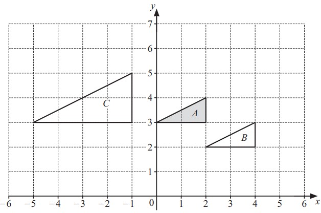 Describe fully the single transformation that maps shape A onto shape B.