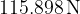 A ship's anchor hangs on a rope and is submerged under seawater. The specific weight of seawater is . Calculate the force with which the anchor rope is tensioned if its mass is and its volume is .