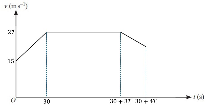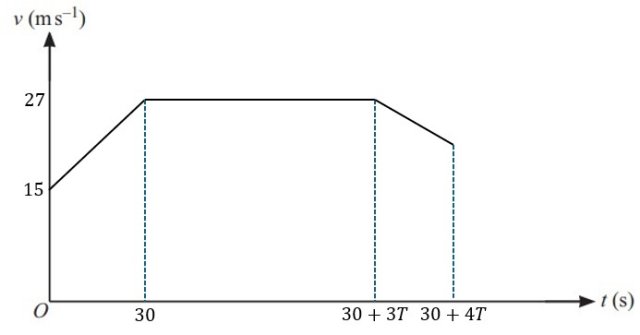 A car is travelling along a straight horizontal road. The car passes through a point A, on the road travelling at a speed of