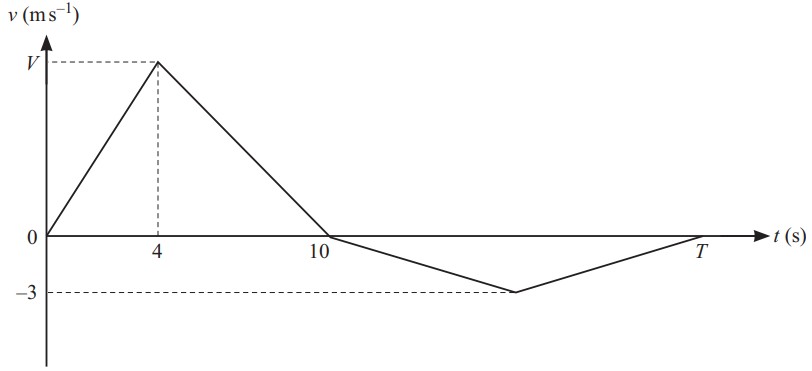 . The diagram shows a velocity-time graph which models the motion of the particle from